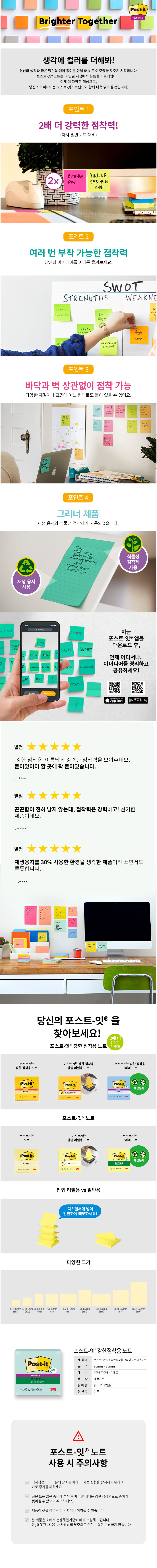 품명3M 포스트-잇 강한점착용 그리너 노트 654 애플민트